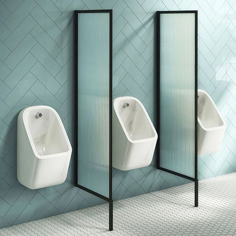 Arezzo Concealed Urinal Pack with 3 x Urinal Bowls + 2 x Matt Black Frame Glass Partitions