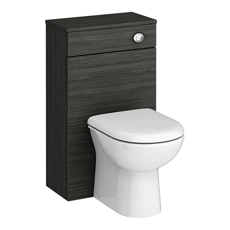 Bring a striking look to your bathroom with the Brooklyn WC Unit in Black. At 502mm wide, it’s appropriate for a compact space and helps to reduce your water consumption with the half flush option. The textured wood effect and eye catching finish create a modern look that’s complemented by the sparkling chrome flush button. This back to wall toilet unit uses a concealed cistern to hide messy pipework, bringing an uncluttered look to your space. Why not pair this Brooklyn toilet unit with the Alaska Back to Wall Toilet Pan?