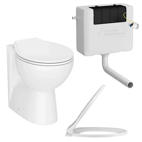 Space at a premium? This Ceramic BTW Toilet Pan with Soft Close Seat and easy access Dual Flush Concealed Cistern is a wise choice for smaller bathrooms and en-suites. The concealed cistern means the toilet fits directly against the wall, projecting just 520mm to leave you with plenty of floor space. Why not combine the back to wall toilet pan with a matching back to wall vanity unit? The toilet includes a water saving dual flush and soft close hinges on the seat and lid – that means you can say goodbye to any unexpected slams.
