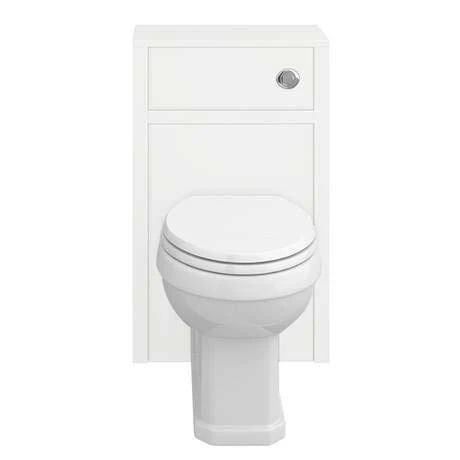 The Chatsworth traditional 500mm wide back to wall toilet unit with pan, Victorian inspired design with a modern twist. The Chatsworth range of charming bathroom furniture features classic styling with a satin white finish and tongue-and-groove side panelling. Manufactured to a high standard, the inspired Chatsworth range of luxury furniture with it’s clean minimalist design and muted palette blends beautifully with any style of bathroom.