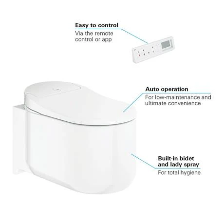 The Grohe Sensia Arena Wall Hung Smart Toilet is an ultra modern option for a revolutionary bathroom routine. It projects 600mm from the wall and includes two spray arms for intimate cleaning – you can adjust these to choose position, pressure and temperature. This wall hung toilet also opens and closes automatically and features a warm air dryer function. You can operate all these elements from the control panel on the side of the seat, the remote control or a smartphone app. It has an elegant shape and a fresh alpine white finish that will complement contemporary bathrooms.