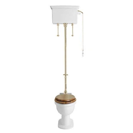 A great choice for modern and period bathrooms, the New Victoria range will make a real statement. This High-level WC and Gold Flush Pack is constructed from high grade vitreous china and vintage gold plated brass ensuring a quality finish and long lasting durability. Includes decorative ornate brackets, pull chain and gold high level flush pipe kit. For peace of mind Heritage offer a lifetime guarantee on all their sanitary ware.
