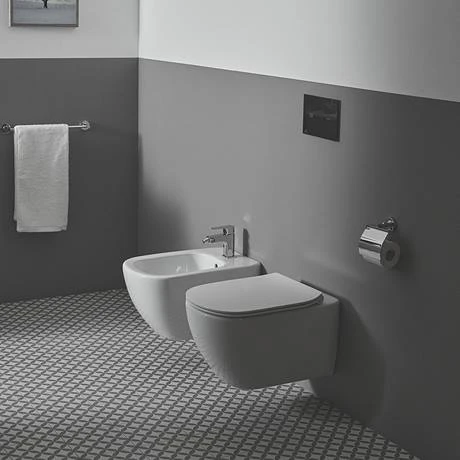 The Tesi range from Ideal Standard combines elegance with functional form, it’s accessible quality and versatility make it easy to assemble a beautifully co-ordinated bathroom. The Tesi wall hung bidet is manufactured from high quality vitreous china for long lasting durability and features a single tap hole and integrated overflow.