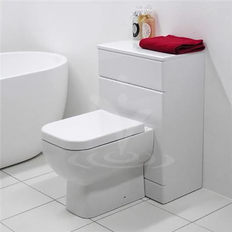 A modern minimalist white gloss back to wall WC unit, perfect for any bathroom. Can be used in conjunction with furniture from the vanity unit range. Comes with dual flush concealed WC cistern, RAK series 600 ceramic pan and a wrap over soft close toilet seat. The unit has a removable front panel which can be drilled for right or left hand front flush.