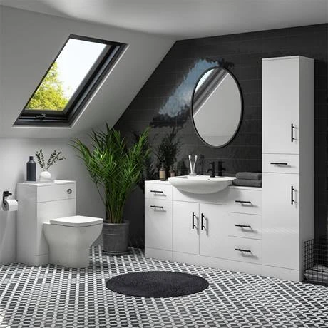 A wide gloss white WC unit with toilet and cistern, part of the Venice range of bathroom furniture. Ideal for giving your bathroom a fresh clean modern look. The unit has a removable front panel which can be drilled for right or left hand front flush. Can be used in conjunction with 300mm depth furniture from the Venice range. Comes with dual flush concealed WC cistern and a modern back to wall pan with soft close toilet seat.