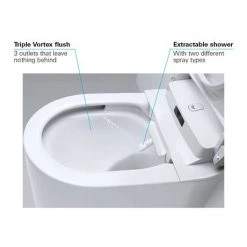 Versatile and inexpensive, the O.novo range from Villeroy and Boch offers the full spectrum of modern bathroom designs. This wall hung toilet is perfect for optimising floor space in your bathroom. The sanitary ceramic is especially long-lasting and easy to clean and is extremely resistant to scratches, knocks and impacts. Includes a soft close seat with quick release.